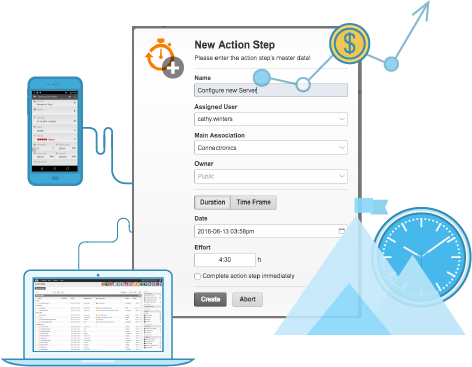 Schnelles Delegieren:Weisen Sie Aktivitäten anderen Benutzern zu - die können diese dann einfach abarbeiten und Ihre Zeiten eintragen.